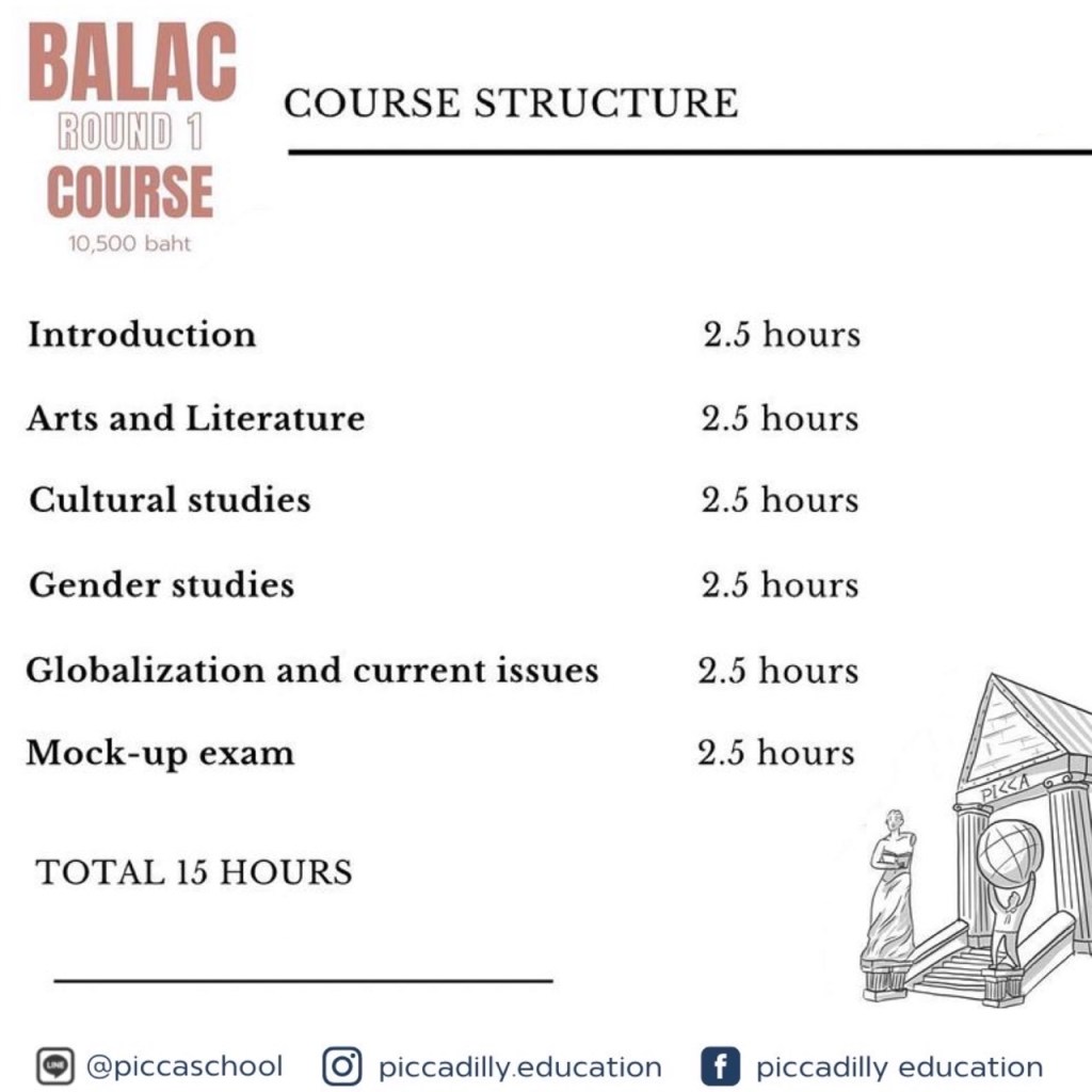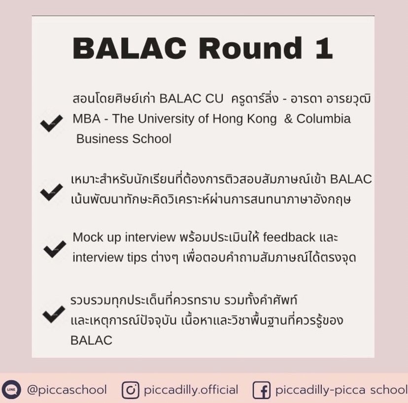 - เหมาะสำหรับนักเรียนที่ต้องการติวเข้า BALAC เน้นทักษะการคิดวิคราะห์ผ่านการสนทนาภาษาอังกฤษ