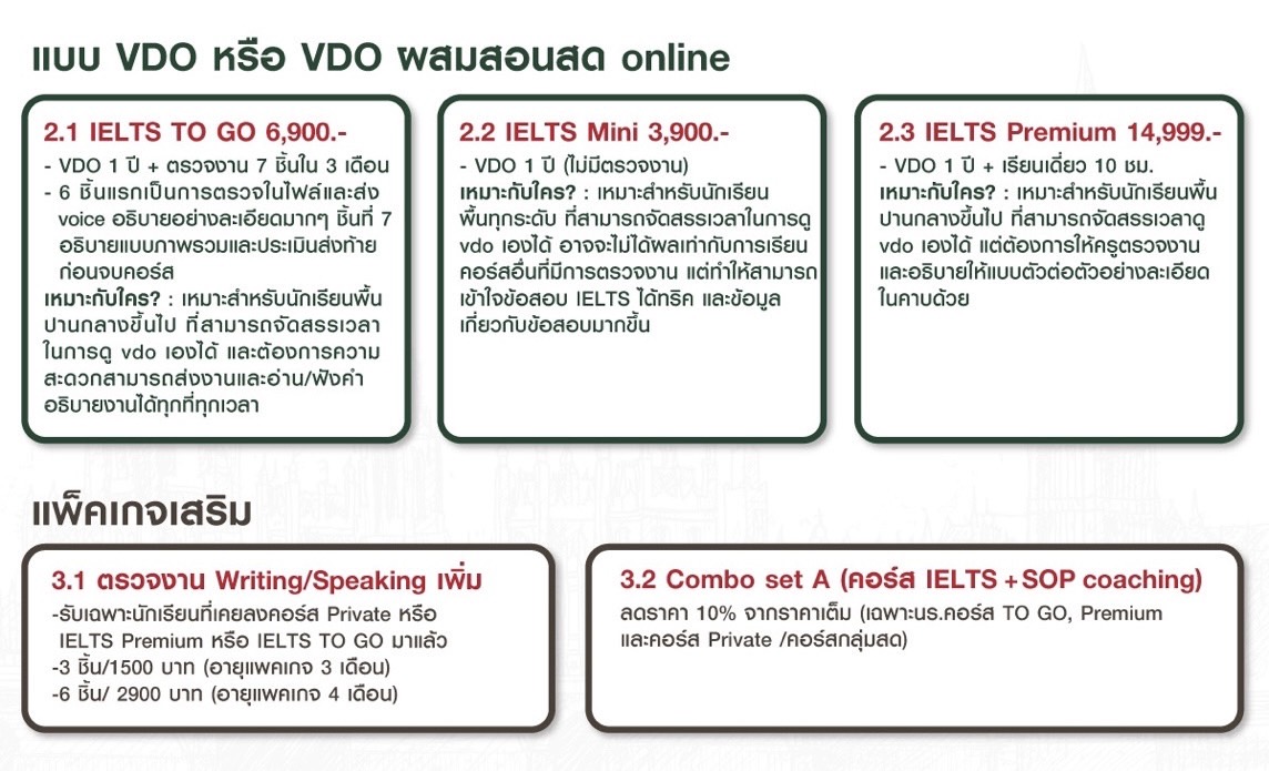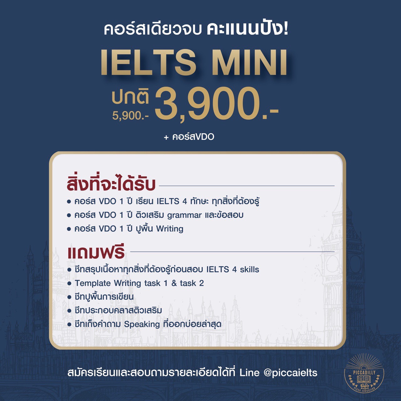 Promotion คลิกที่แต่ละภาพเพื่ออ่านรายละเอียด โปรโมชั่นลดราคาคอร์ส IELTS VDO และคอร์ส IELTS เดี่ยวผสม VDO ปัจจุบัน VDO ทุกคอร์สขยายเวลาเป็น 1 ปี และ IELTS TO GO เพิ่มการตรวจงานเป็น 7 ชิ้นค่ะ สมัครหรือสอบถามรายละเอียดได้ที่ line @piccaielts